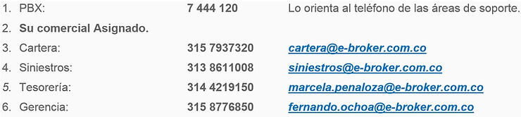 Estos momentos nos obligan a pensar y actuar diferente. Por lo anterior, nuestros procesos de recaudo de primas, envío y/o entrega de pólizas, han cambiado, por lo cual, todo tendrá que realizarse por medios electrónicos. Nuestro departamento de Cartera y nuestros comerciales, estarán a su disposición para asesorarle en los procesos que ustedes requieran.